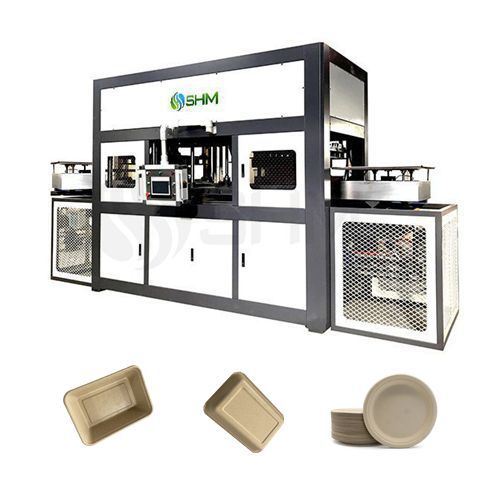 The pulp molding tableware machine from SHM is a fully automatic thermoforming machine designed to produce a wide range of disposable sugarcane bagasse plates, biodegradable plates, and environmentally friendly disposable tableware. Using advanced vacuum mold forming technology, it transforms natural fibers such as sugarcane bagasse, bamboo pulp, or wood pulp into nice compostable plates, disposable plates and bowls for hot food, and even wood looking paper plates with lids.